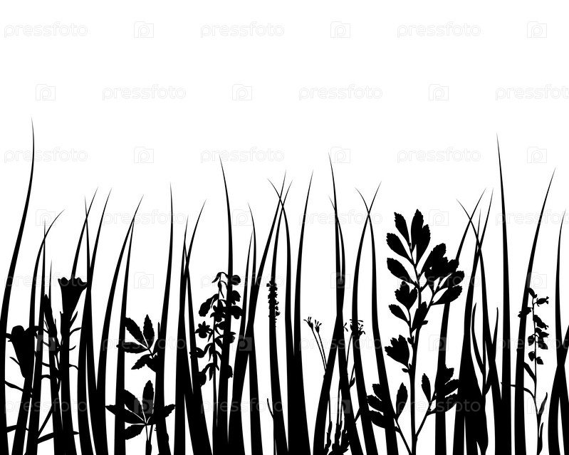 Черные очертания травы на белом фоне