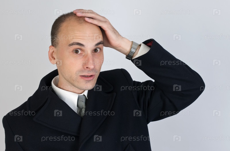 Бизнесмен смотрит в камеру с тревожным выражением лица