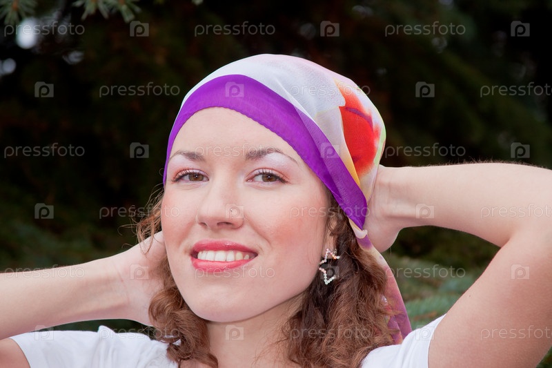 Красивая молодая женщина с платком на голове