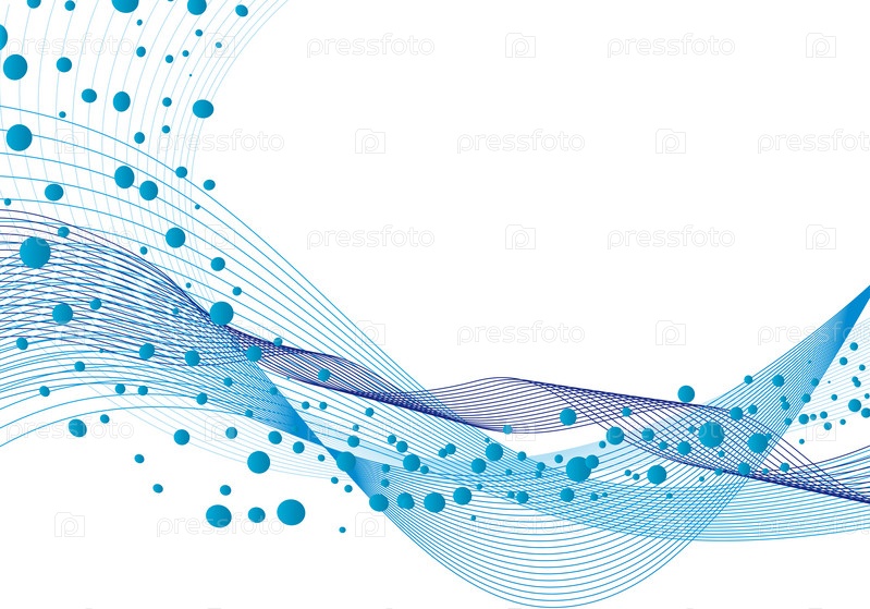 Синие нарисованные волны с пузырьками воздуха на белом фоне