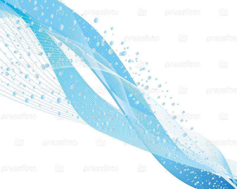 Синие нарисованные волны с пузырьками воздуха на белом фоне