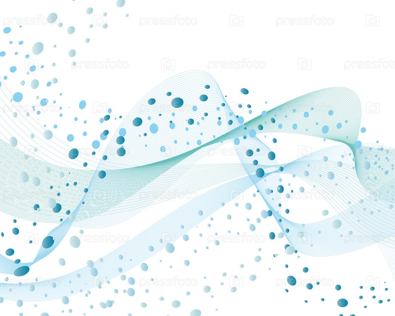 Синие нарисованные волны с пузырьками воздуха на белом фоне