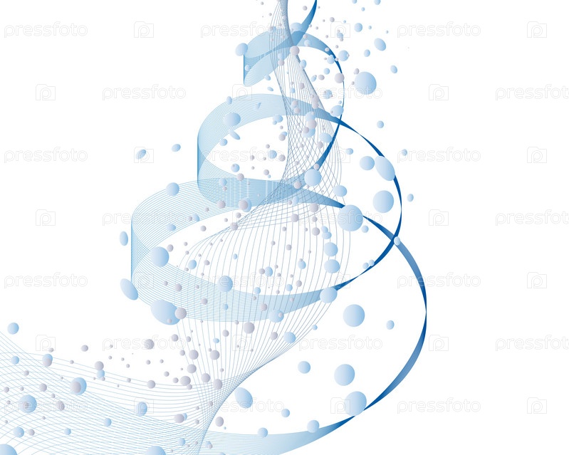 Синие нарисованные волны с пузырьками воздуха на белом фоне