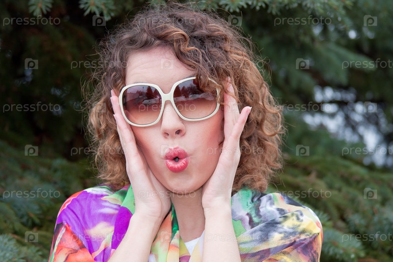 Красивая молодая женщина в темных очках