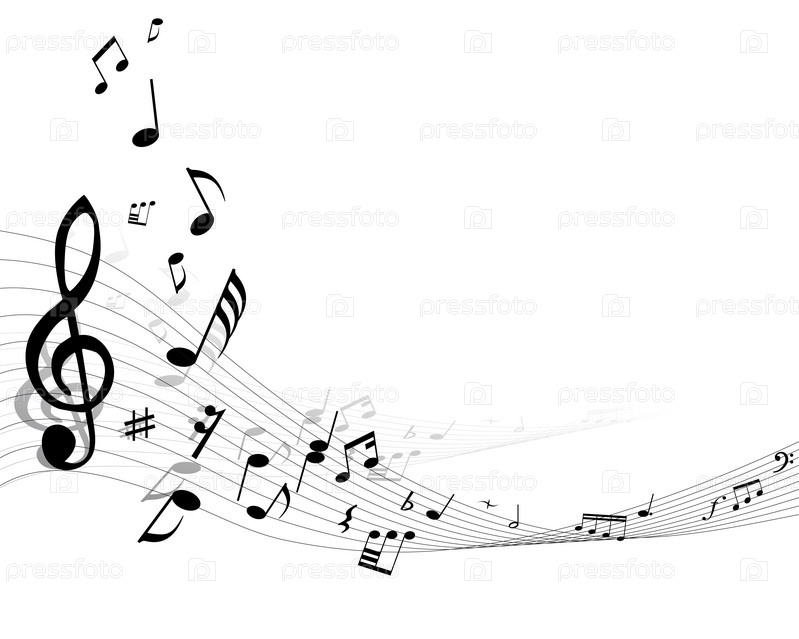 Скрипичный ключ и ноты на белом фоне
