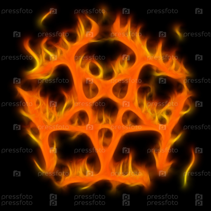 Резюме загадочного символа пентаграммы, имитируемого пламенем на черном фоне