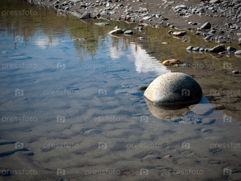 Горы и небо отражаются в воде