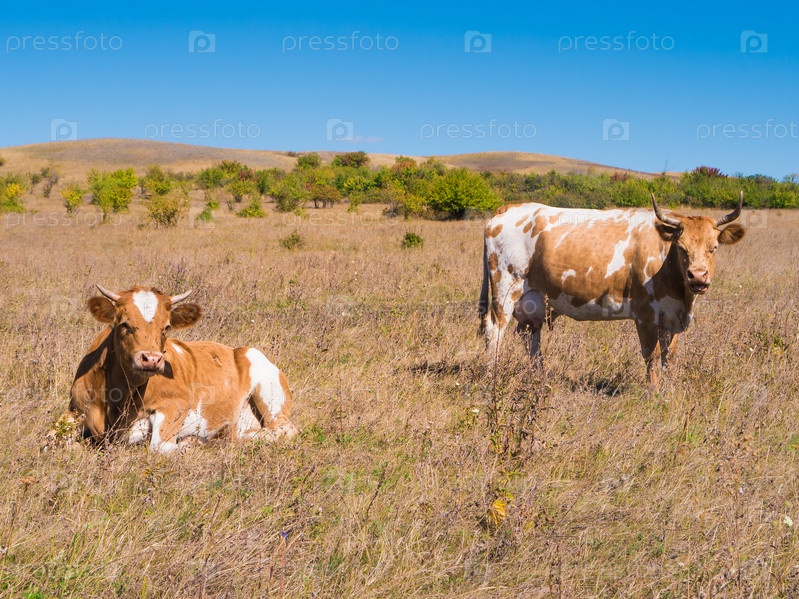 Две коровы на пастбище