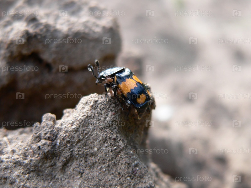 Полосатый жук на камне крупным планом