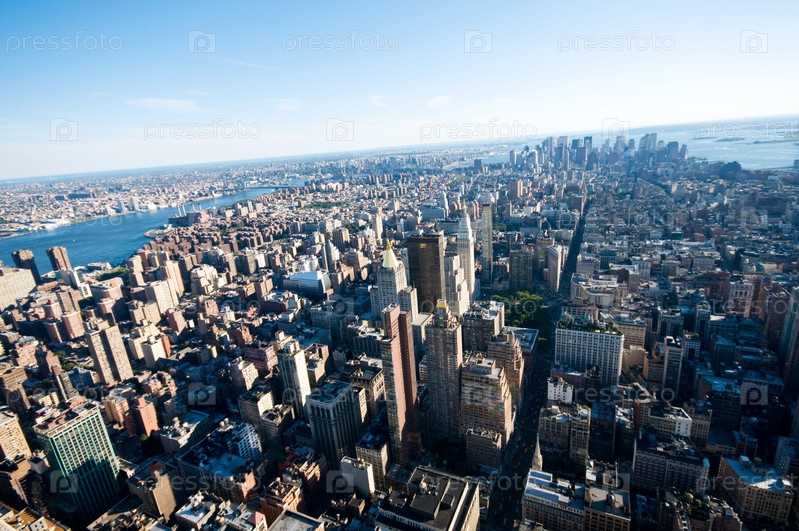 Нью-Йорк, панорама города с высокими небоскребами