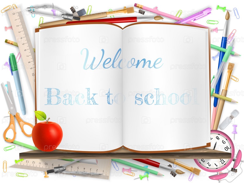 Школьные принадлежности и шаблон для текста. EPS 10