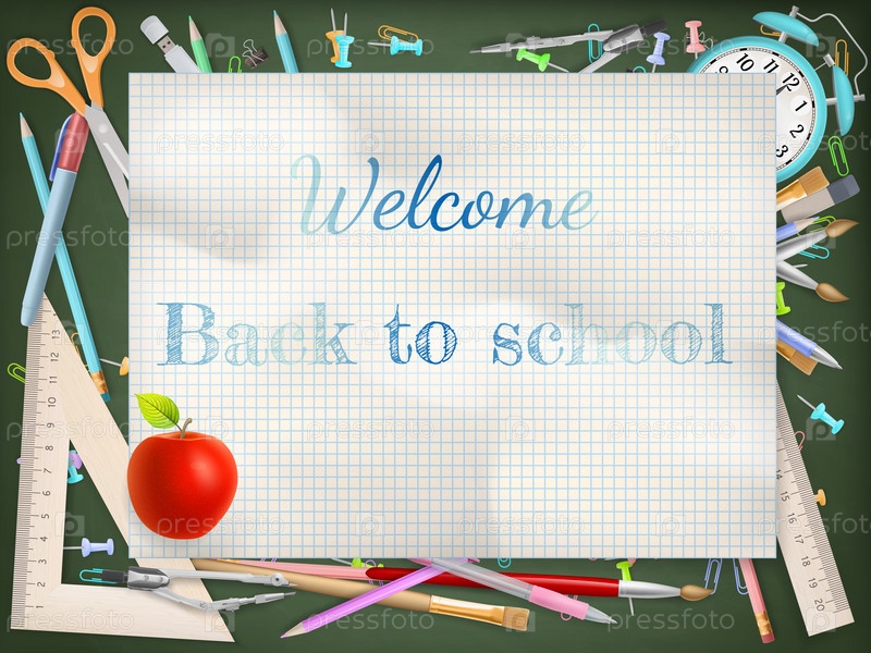 Фраза 'Назад в школу' на листе тетради. EPS 10