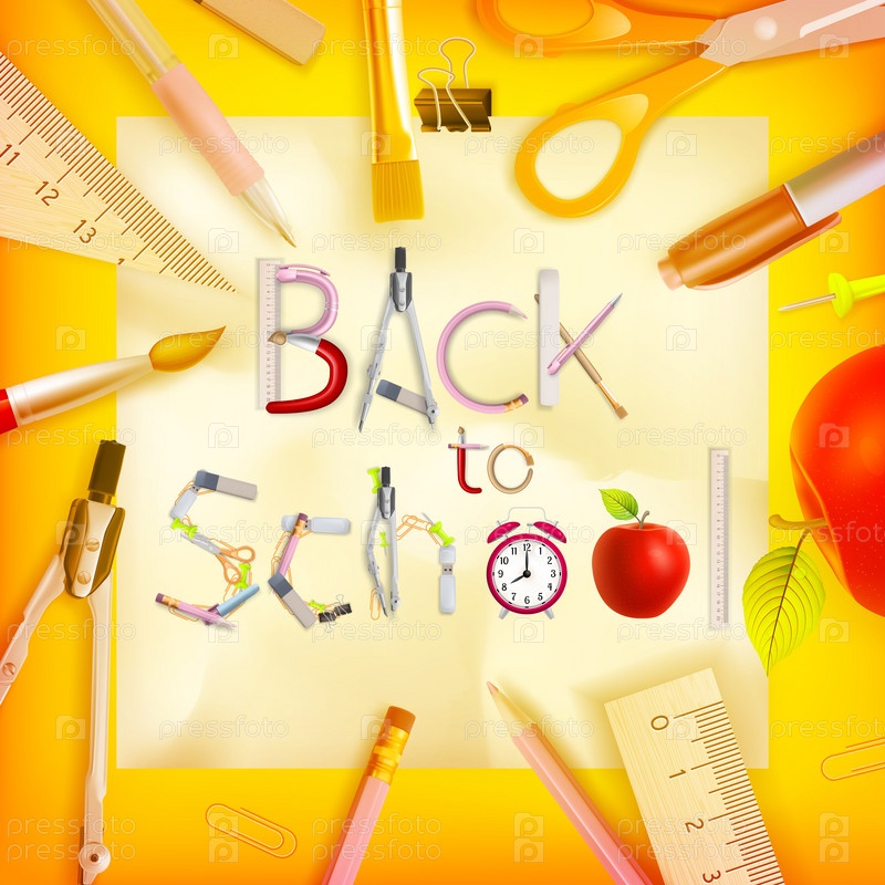 Школьные принадлежности и фраза 'Назад в школу'. EPS 10