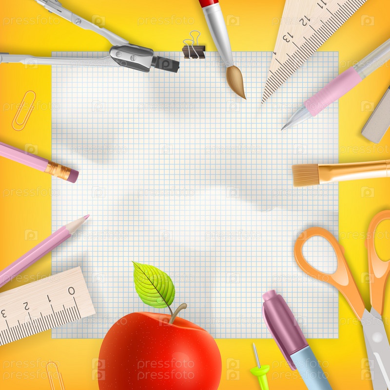 Школьные принадлежности и шаблон для текста. EPS 10