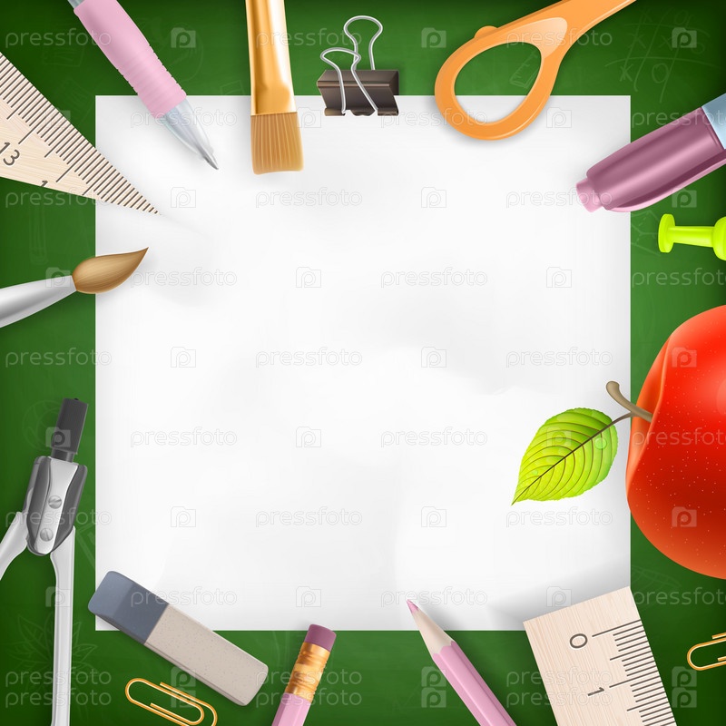 Школьные принадлежности и шаблон для текста. EPS 10