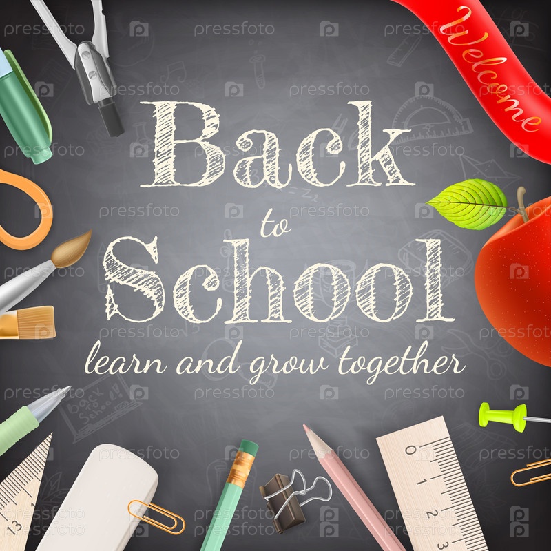 Школьные принадлежности и фраза 'Назад в школу'. EPS 10