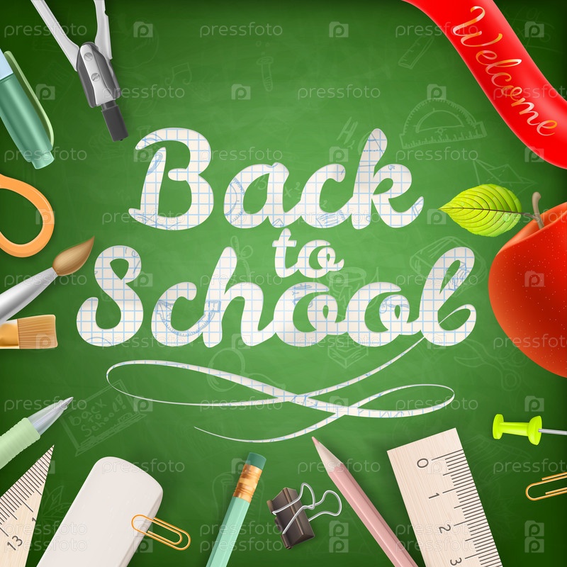 Школьные принадлежности и фраза 'Назад в школу'. EPS 10