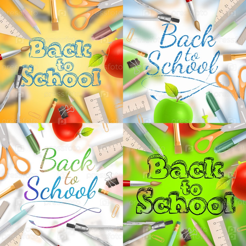 Школьные принадлежности и фраза 'Назад в школу'. EPS 10