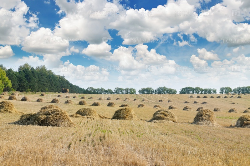 Поле со копнами соломы
