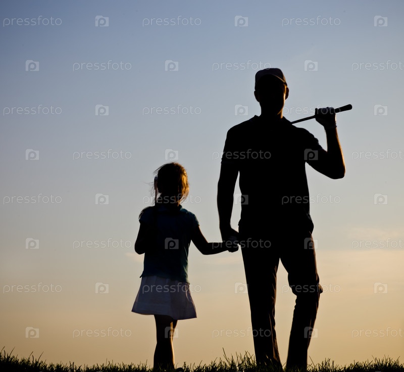 Гольфист на на фоне заката