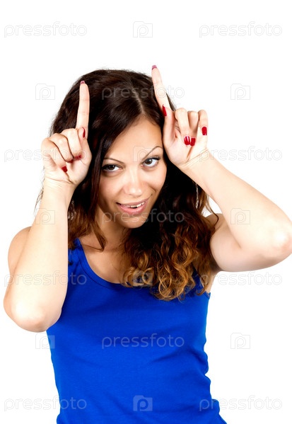 Девушка показывает рога
