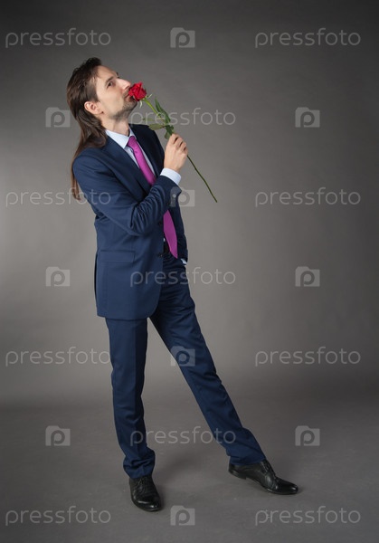 Красивый мужчина в костюме с цветком