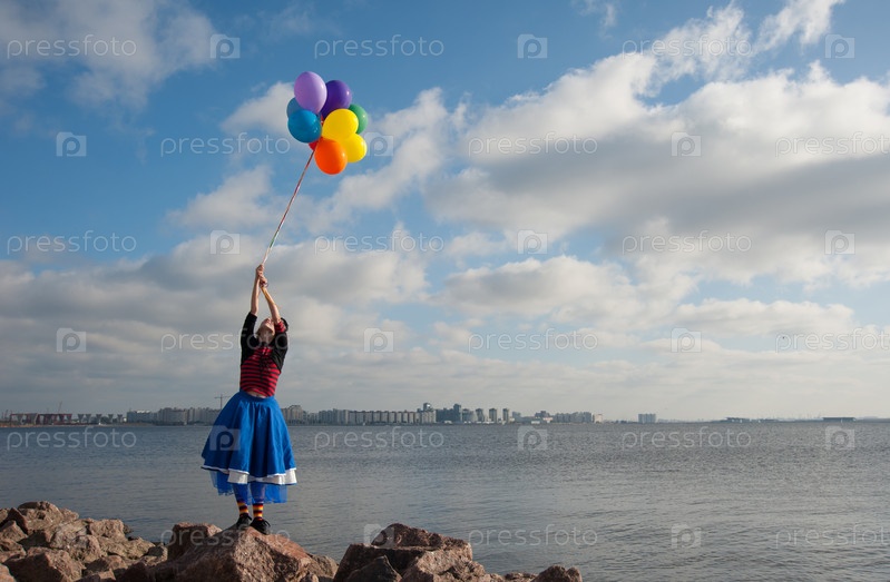 Девушка с воздушными шарами на берегу