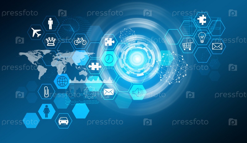 Абстрактный синий фон с иконками