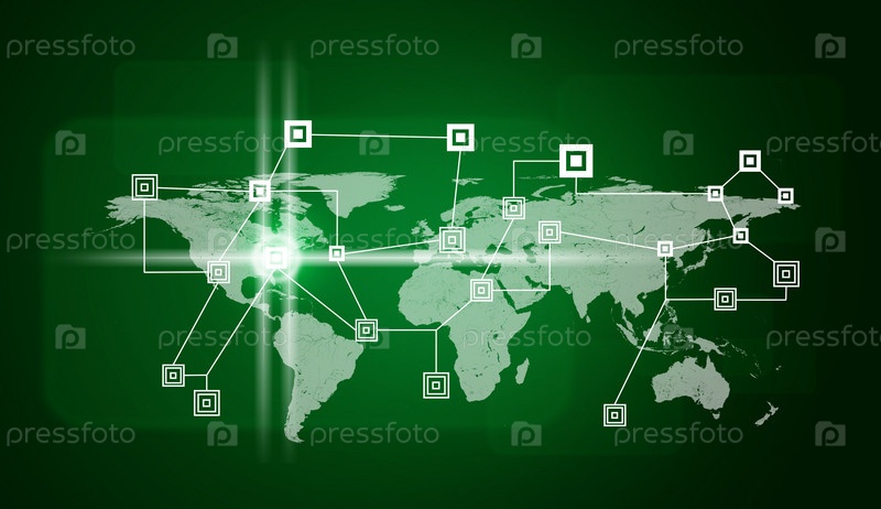 Сеть иконок на карте мира