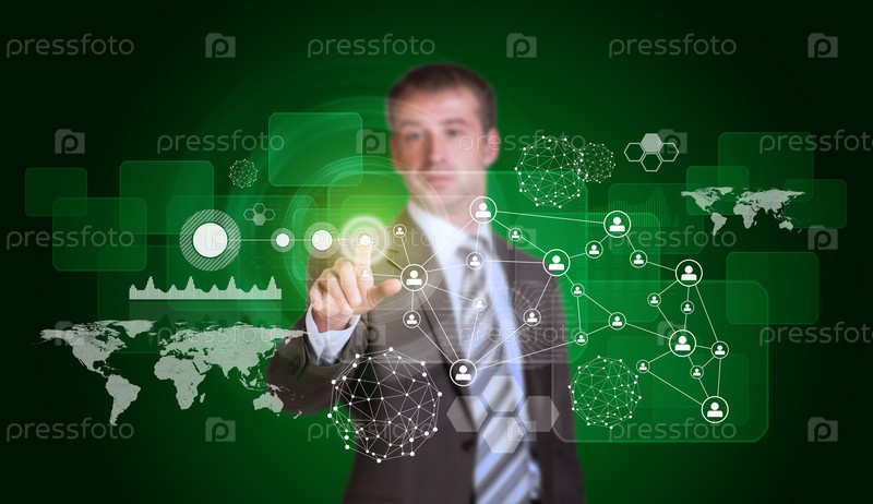Бизнесмен нажимает кнопку