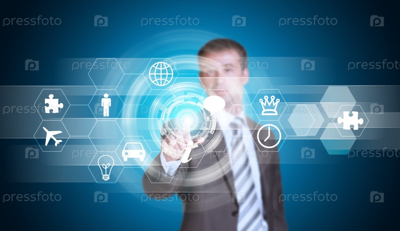 Бизнесмен нажимает кнопку