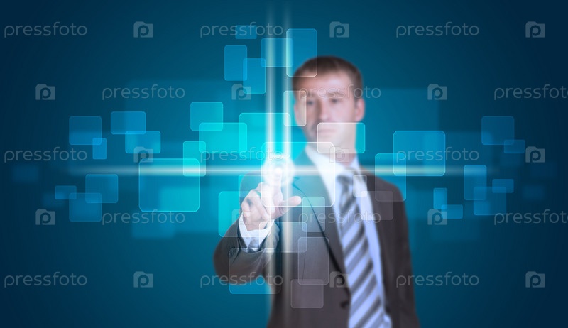 Бизнесмен нажимает кнопку