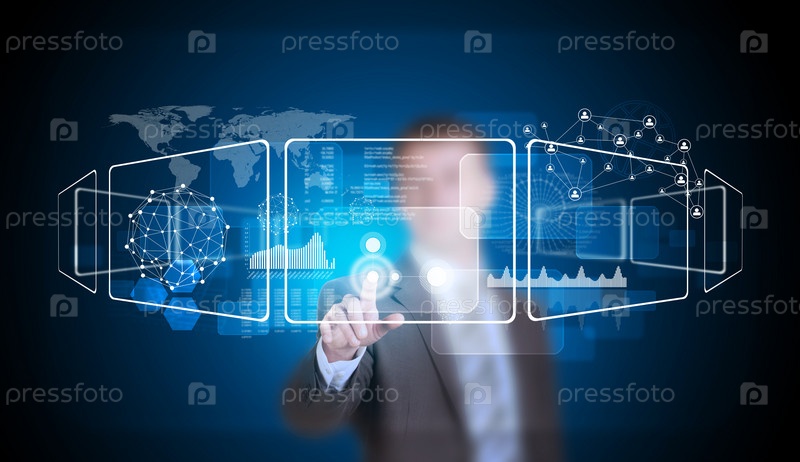 Бизнесмен нажимает кнопку