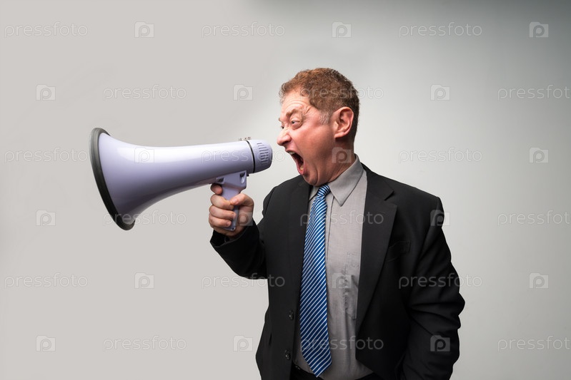 Мужчина кричит в мегафон