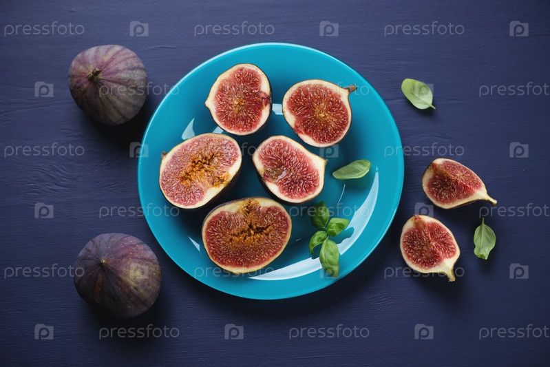 Спелые нарезанные плоды инжира в тарелке