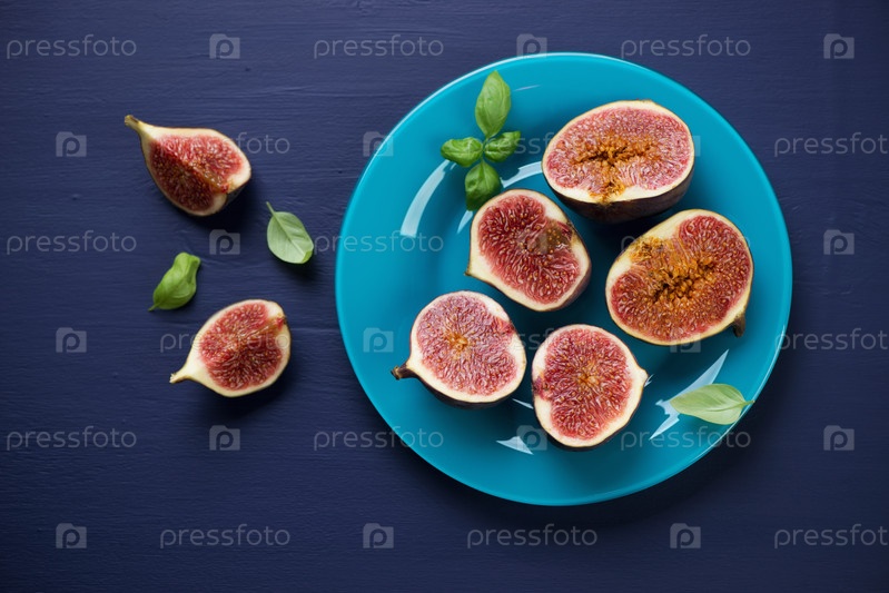 Спелые нарезанные плоды инжира в тарелке