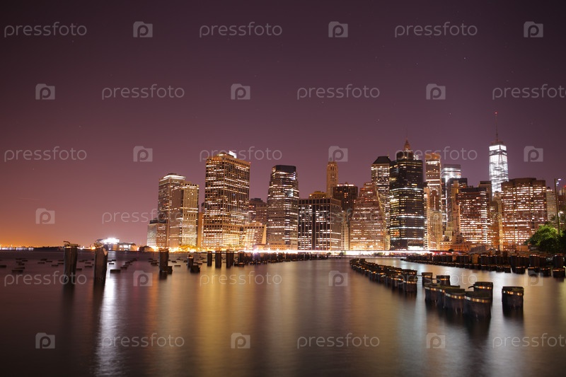 Небоскребы на острове Манхэттен ночью. Нью-Йорк