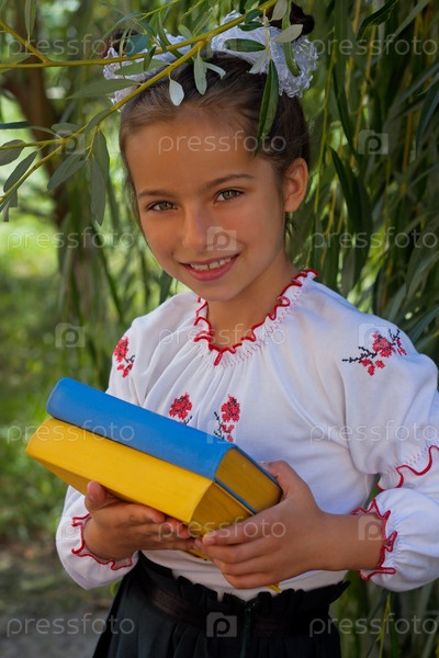 Семилетняя девочка с учебником