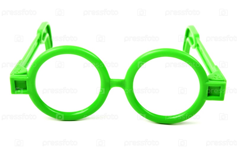 Детские игрушечные зеленые очки, изолированные на белом фоне