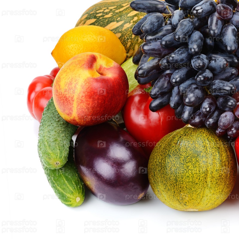 Набор фруктов и овощей, изолированный на белом фоне