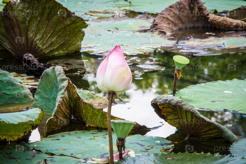 Розовый лотос в пруду