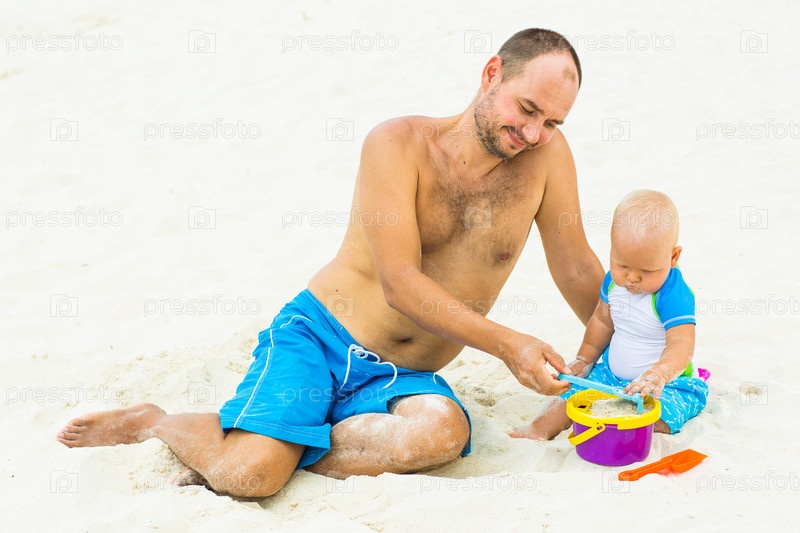 Отец с ребенком на пляже