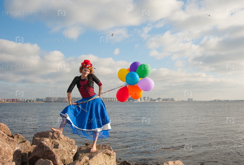 Женщина с воздушными шариками на берегу