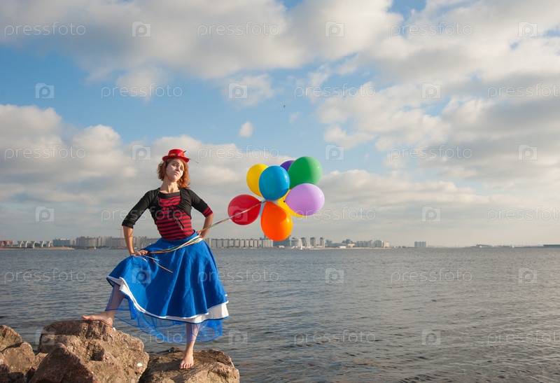 Женщина с воздушными шариками на берегу