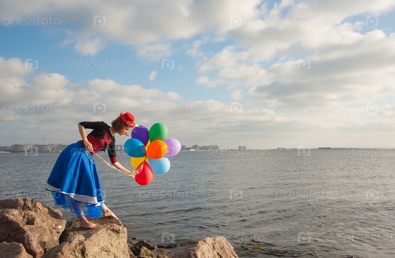 Женщина с воздушными шариками на берегу