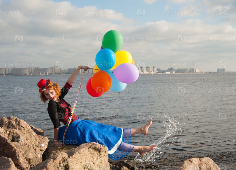 Женщина с воздушными шариками на берегу