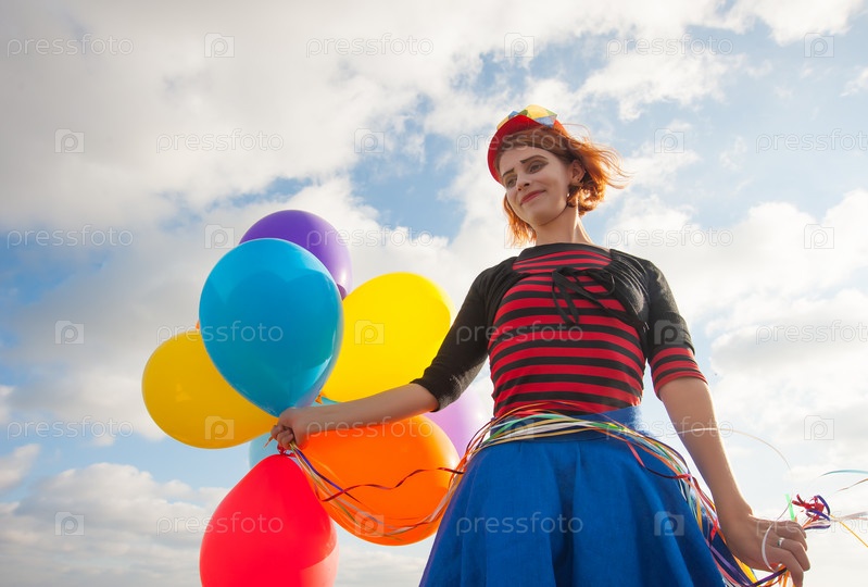 Женщина с воздушными шарами на море