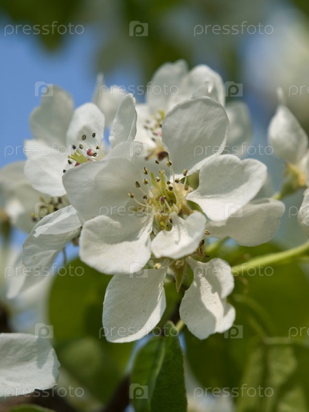 Цветы груши крупным планом
