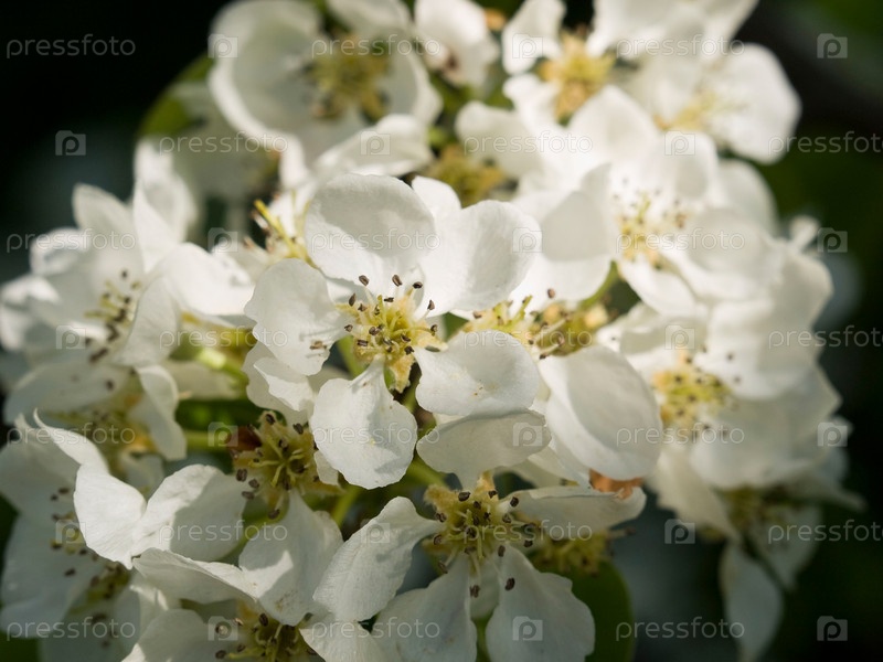 Цветы груши крупным планом