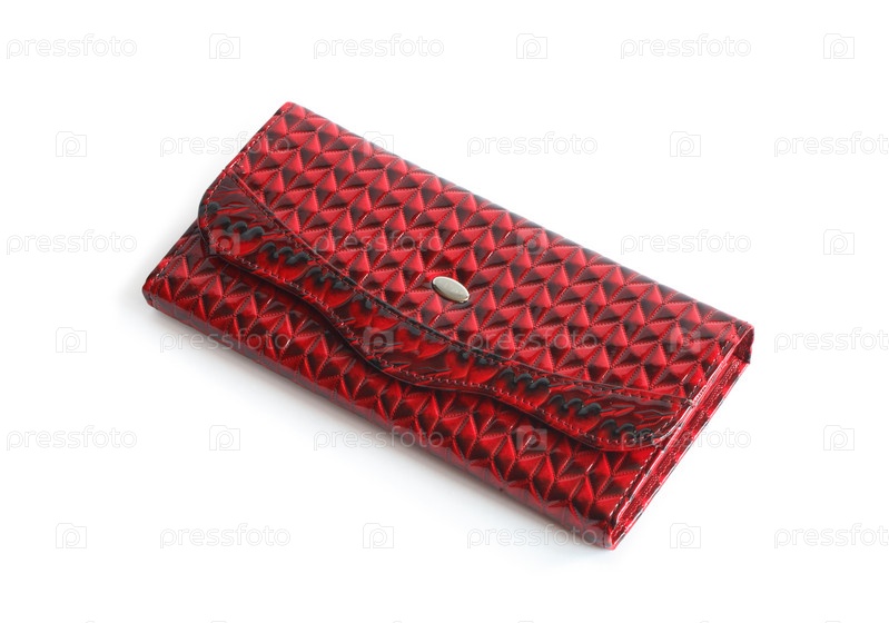 Красный кожаный кошелек на белом фоне